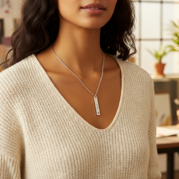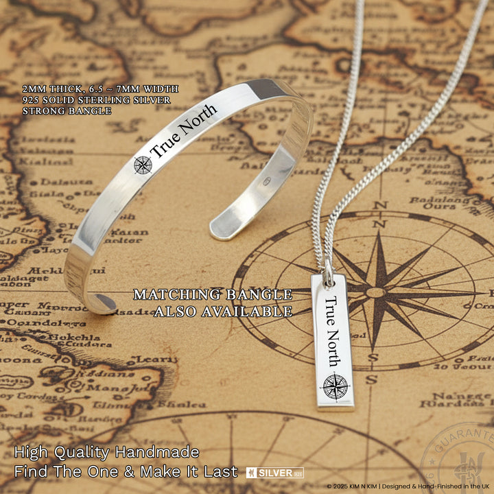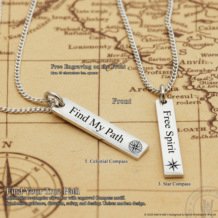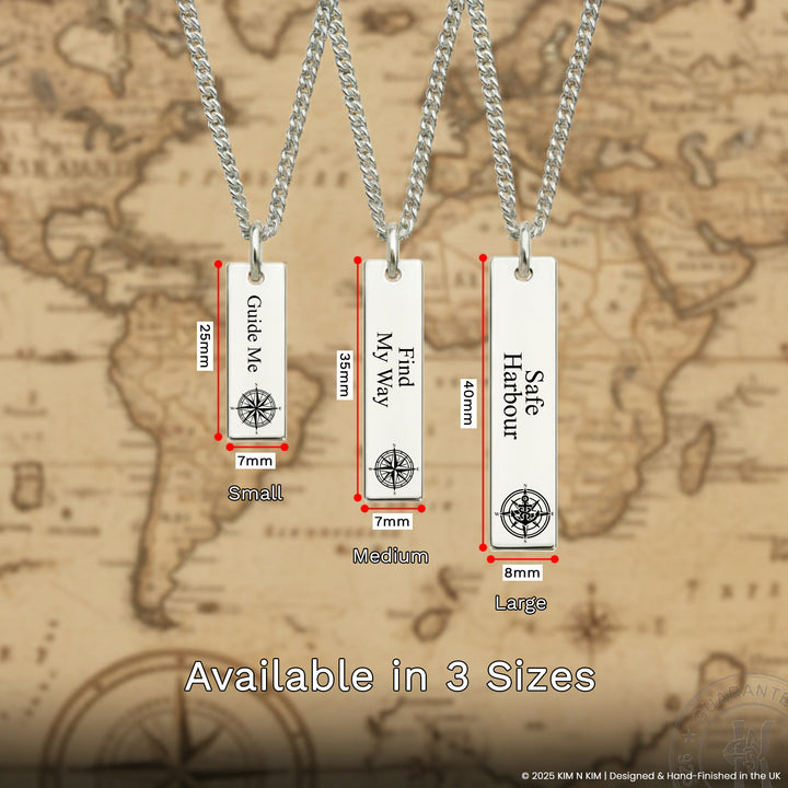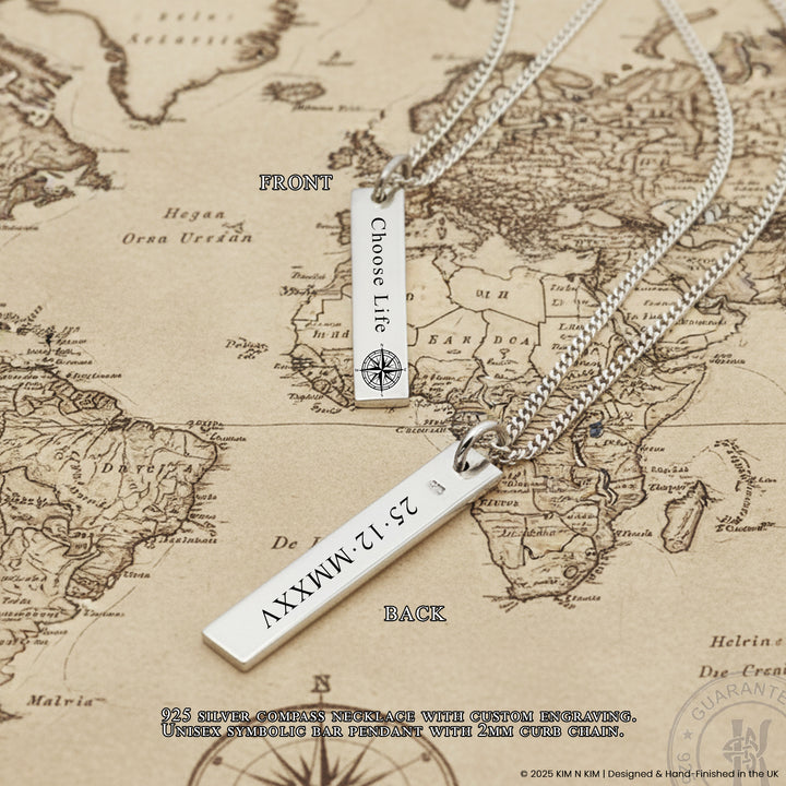 Personalised Compass Necklace - 925 Silver Personalised Bar