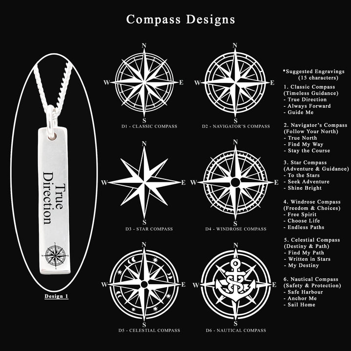 Brand or Name: Personalised Compass Necklace - 925 Silver Personalised Bar