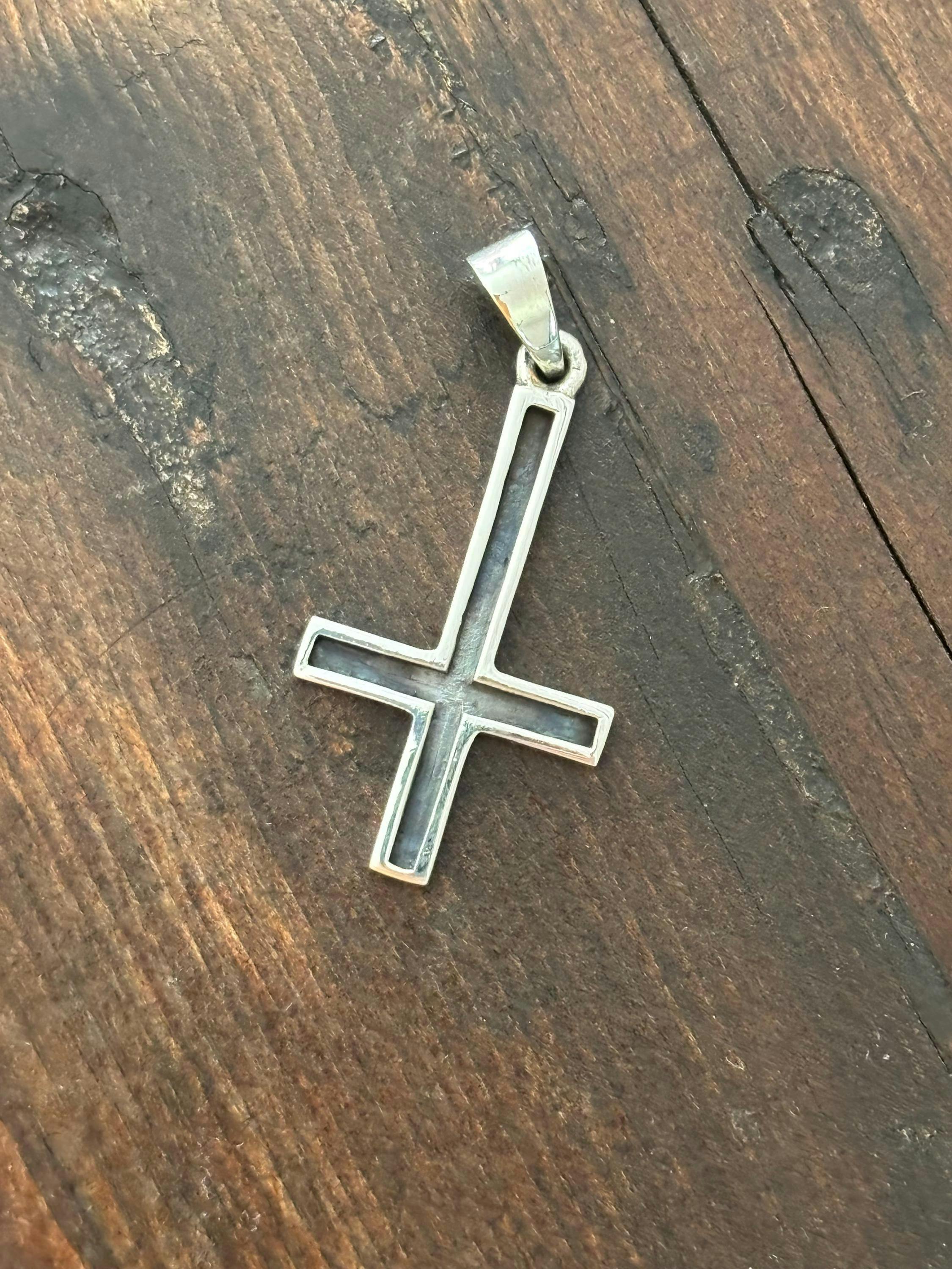 Bold handmade inverted cross necklace in solid 925 sterling silver.