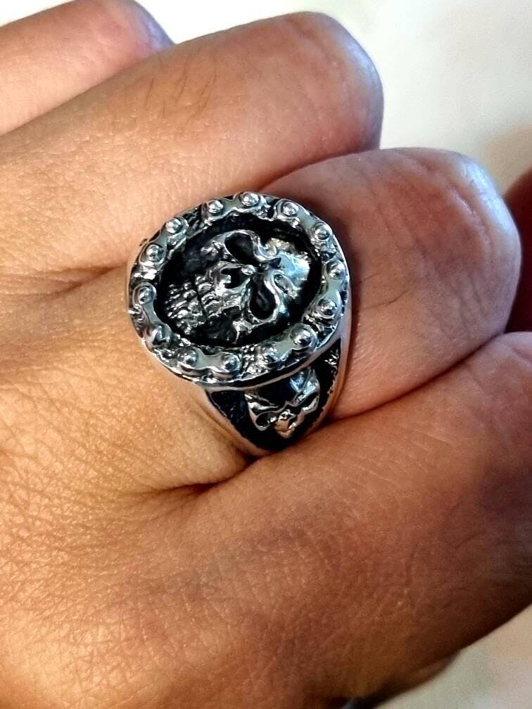 Name : Skull Head with Bike Chain Signet Ring