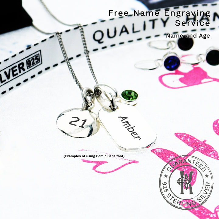 Birthday Disc Tag Name Pendant Necklace with Birthstone