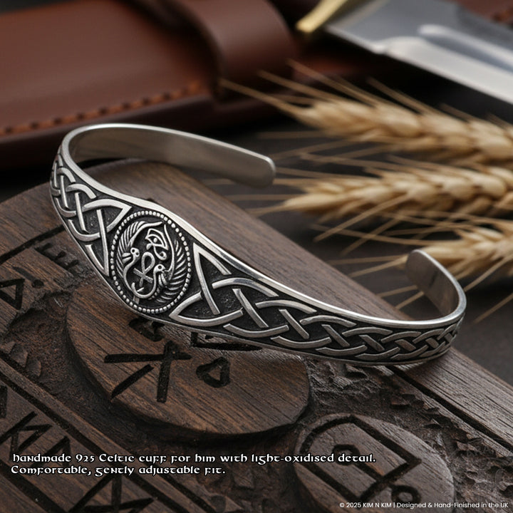 ✨Handmade 925 Celtic cuff for men with adjustable fit. Light-oxidised detail and **inside engraving** available for £5. Gift-ready packaging.✨