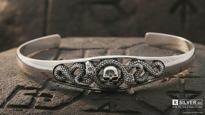 Brand or Name: 925 Sterling Silve Skull & Serpent Cuff Bangle