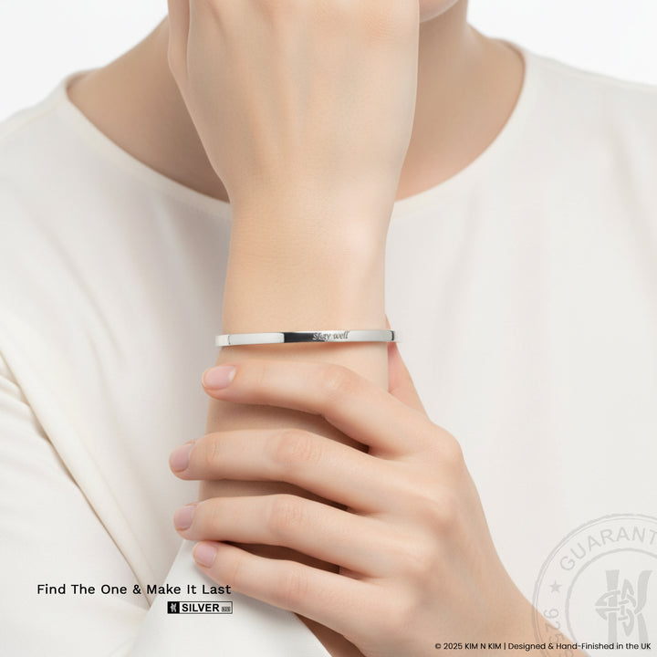 Personalised 925 Silver Cuff Bangle | Adjustable Unisex