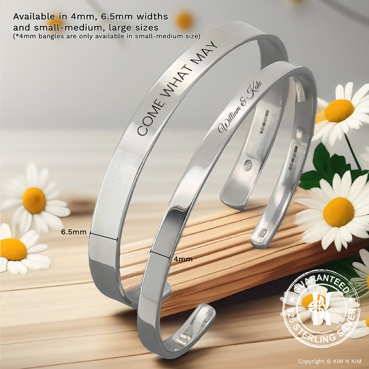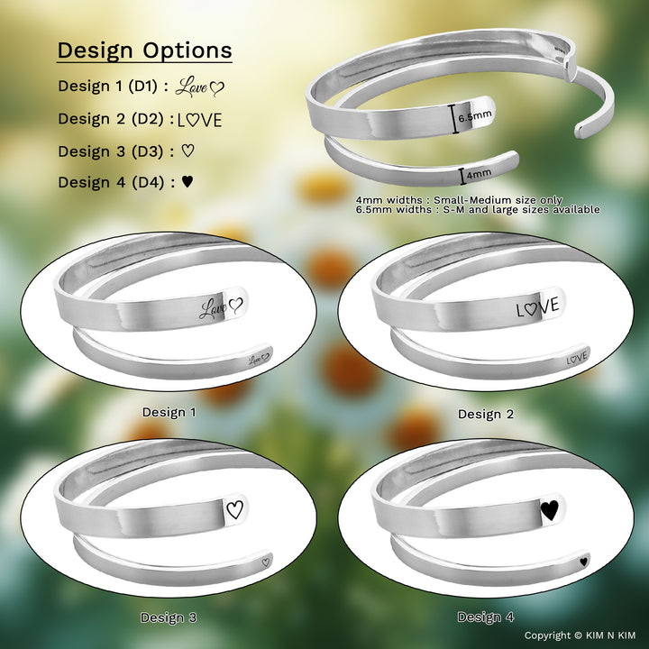 Brand or Name: Small-Medium 925 Silver Personalized Love Bangle (Solid inside)