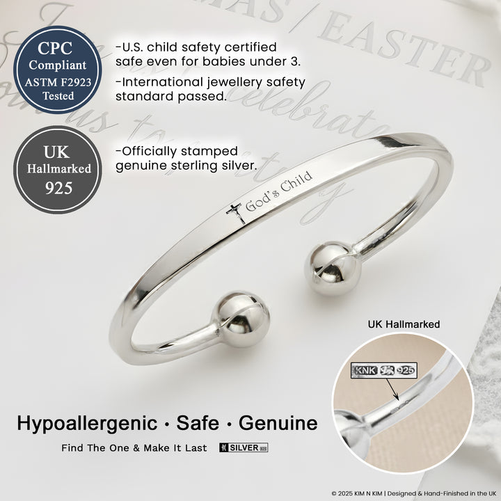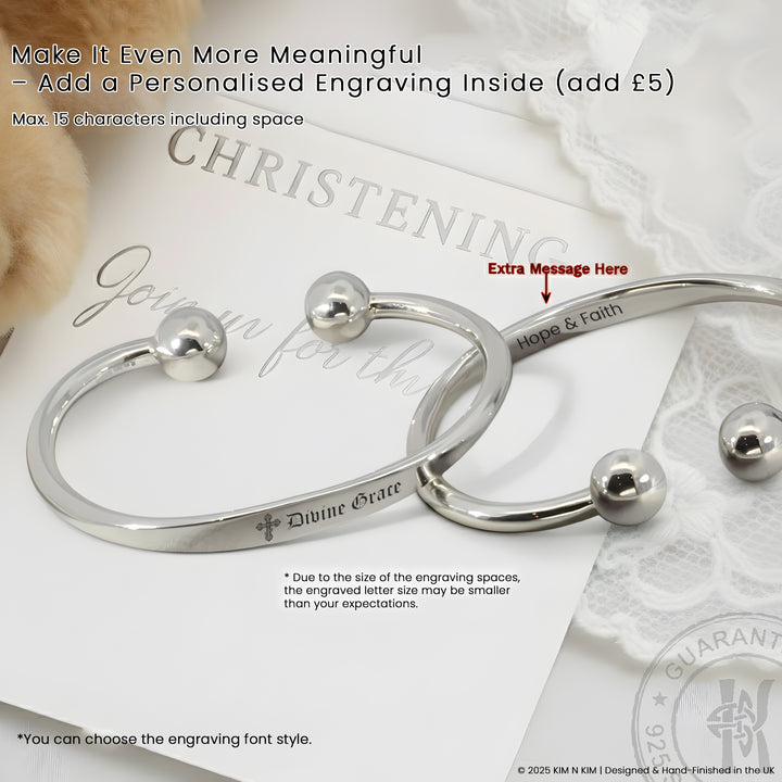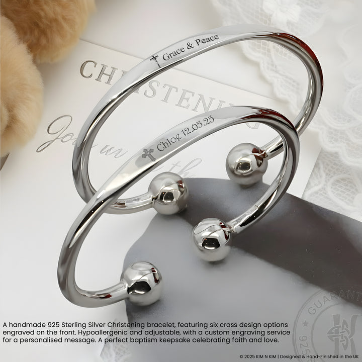 ✨CPC-tested, UK-hallmarked sterling silver christening bangle. Cross design of your choice with free engraving for a lasting baptism keepsake.✨