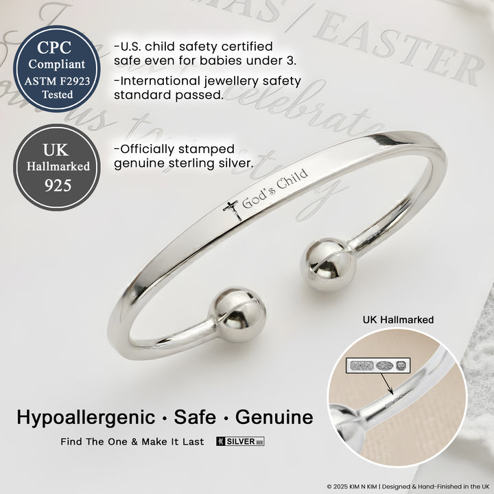 β¨CPC-tested, UK-hallmarked sterling silver christening bangle. Cross design of your choice with free engraving for a lasting baptism keepsake.β¨