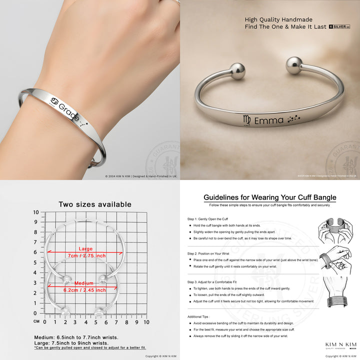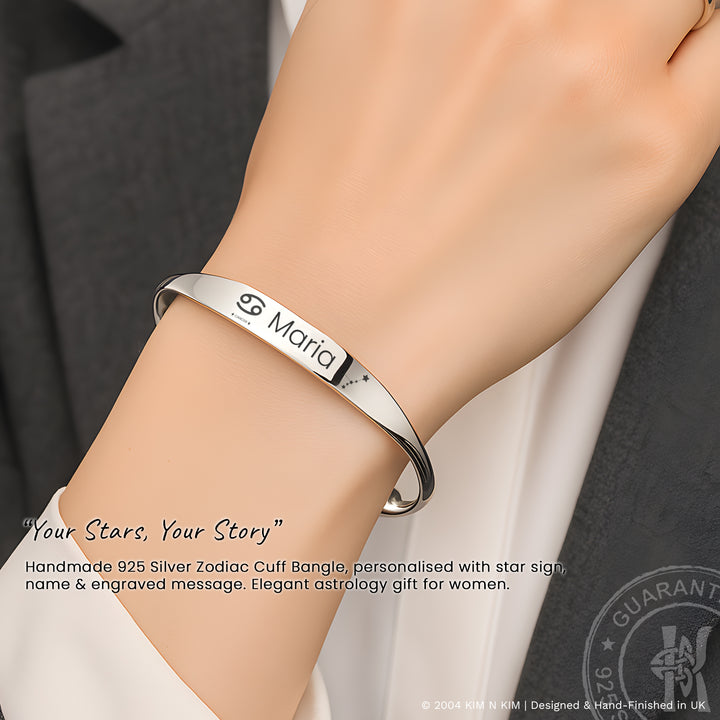 Personalised Zodiac Cuff Bangle – 925 Silver Astrology Bracelet
